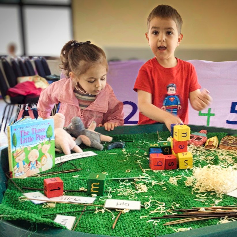 This week’s story of the Three Little Pigs has sparked lots of imaginative play. Children have built houses for the pigs from a variety of materials and retold the story using characters and props.